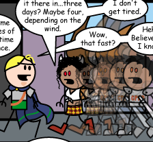 Sabine: I can make it there in...three days? Maybe four, depending on the wind.