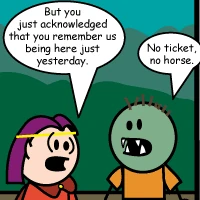 Half-orc: I can't give you your horse back unless you have the yellow ticket.