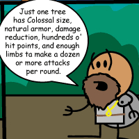 | Durkon's Fear of Trees | Durkon has an irrational fear of trees as like other dwarves. Parodied when Leeky Windstaff is introduced. | Durkon mentions paper cuts as "treevenge"