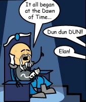 | "Dunh dunh DUNH!" | Elan says dunh dunh DUNH! To heighten dramatic tension, as if there were a soundtrack to his life. Even Roy and Tarquin has picked up on the gag. | Roy mentions the gag in 490.