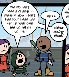 | "Isn't Your Dad Dead?" | Whenever Roy mentions the manifestation of his father, one of the Order of the Stick says "Isn't your dad dead?". this is said variously by Elan, Belkar, and Haley (even when she lost her voice). | 60, 94, 116, 291 | ||