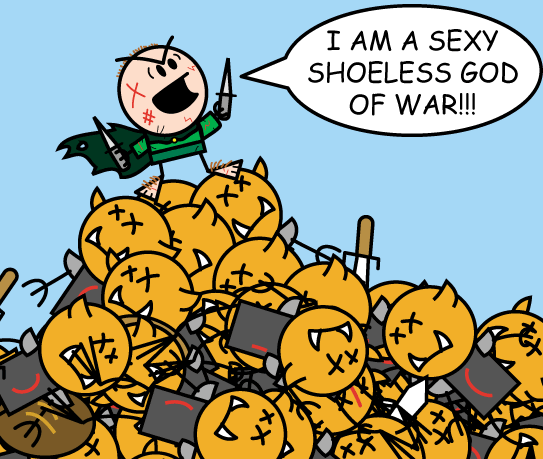| Sexy Shoeless God of War | Belkar announces he is this from time to time. | In 476, Belkar proclaims himself a sexy shoeless god of cooking. | 439, 610, 807 | |