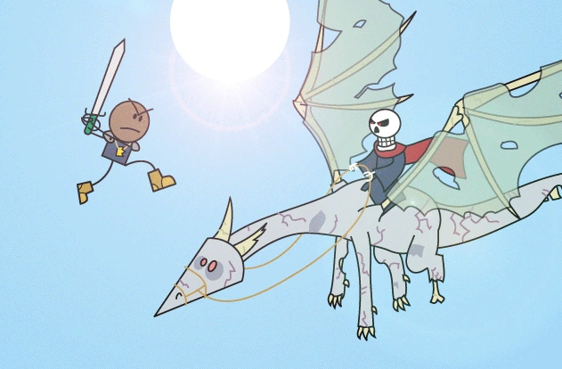 Roy leaping through the air to face Xykon.