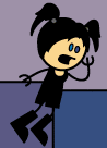 Tsukiko was a young human woman, perhaps even a teenager, although her exact age was unknown. Her most unique feature was her eyes—one light blue and one dark blue, which represented her ability to cast both arcane and divine spells, the core ability of the mystic theurge class. Strangely enough, the colors seem to be inconsistent—the eyes sometimes swap colors. She had black hair which she always wore in a pair of pigtails, and she wore a gothic, torn black dress and black boots. When sleeping, Tsukiko wore a babydoll, and slippers that match the colors of her eyes.[1] She also carried what appeared to be a Xykon plushie.