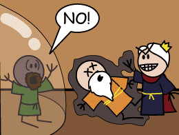 It was later revealed that the crown had no magical properties, and Xykon merely thought it looked "badass." This led to Eugene swearing a "Blood Oath of Vengeance" against the sorcerer, an oath that, with his death, has now passed down to Eugene's children, Roy and Julia. Xykon remembers very little of this event due to the sheer number of people swearing revenge on him for killing their loved ones in front of them, though he did tell Roy more details of the event upon taking back his crown, which Roy had worn on a necklace.