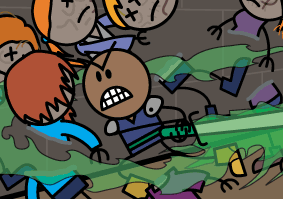The current fate of Malack, split from the group, is seen. The Order of the Stick squares off against the Linear Guild, with Roy Greenhilt having destroyed all seen mummy forces.